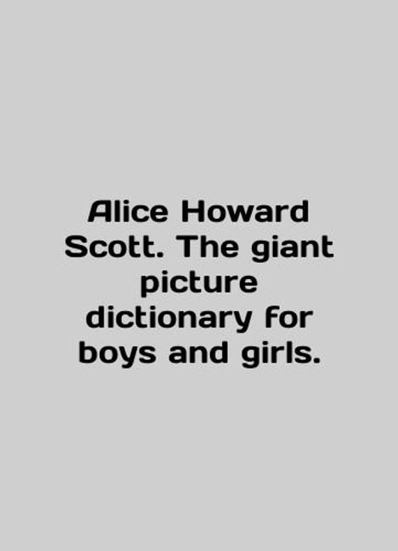 Alice Howard Scott. The giant picture dictionary for boys and girls. In English /Alice Howard Scott. The giant picture dictionary for boys and girls. Bridlington Peter Haddock Ltd. 190 We have thousands of titles and often several copies of each title may be available. Please feel free to contact us for a detailed description of the copies available. SKUalbcf4bcff8654e476d.