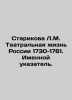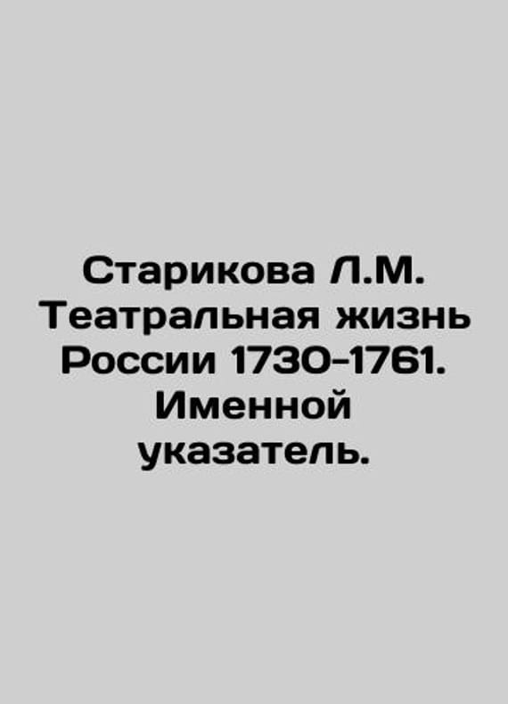 Starikova L.M. Theatre Life in Russia 1730-1761. Name Index. In Russian /Starikova L.M. Teatralnaya zhizn Rossii 1730-1761. Imennoy ukazatel. Moscow: State Institute of Art Studies, 2023. 192s. We have thousands of titles and often several copies of each title may be available. Please feel free to contact us for a detailed description of the copies available. SKUalbcf6068593cd07af8.