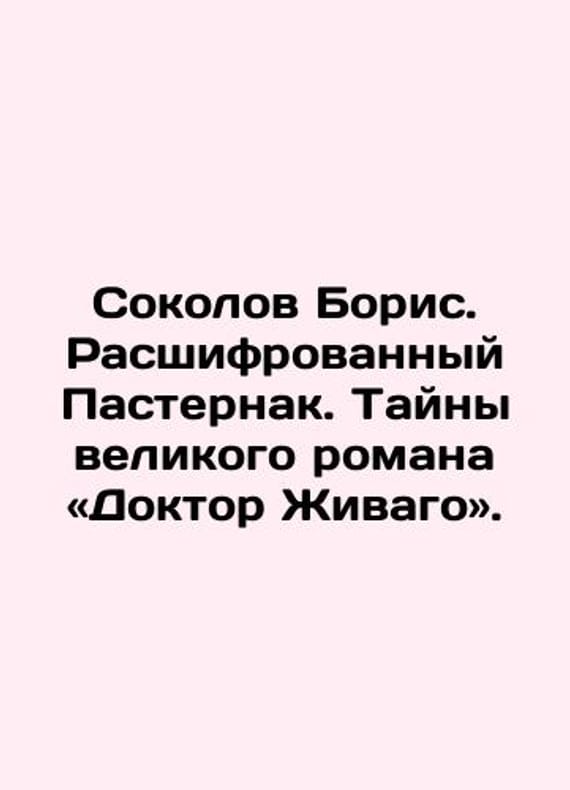 Boris Sokolov. Decoded Pasternak. Secrets of the great novel Doctor Zhivago. In Russian /Sokolov Boris. Rasshifrovannyy Pasternak. Tayny velikogo romana «Doktor Zhivago». Series: Decoded Literature. Moscow: Yauza-press, 2022. 384 p. We have thousands of titles and often several copies of each title may be available. Please feel free to contact us for a detailed description of the copies available. SKUalbcf625c2652604d45.