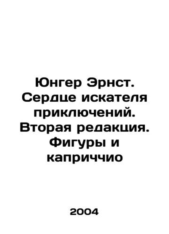 Junger Ernst. The Heart of the Adventurer. Second Edition. Figures and Capriccio In Russian /Yunger Ernst. Serdtse iskatelya priklyucheniy. Vtoraya redaktsiya. Figury i kaprichchio Series: Sputnik M. Ad Marginem 2004, 288 p. We have thousands of titles and often several copies of each title may be available. Please feel free to contact us for a detailed description of the copies available. SKUalbcfee1750ce307a9d.