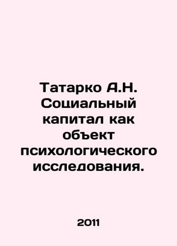 Tatarko A.N. Social capital as an object of psychological research. In Russian /Tatarko A.N. Sotsialnyy kapital kak obekt psikhologicheskogo issledovaniya. Monograph. Moscow: MAKS Press, 2011. 176 p. We have thousands of titles and often several copies of each title may be available. Please feel free to contact us for a detailed description of the copies available. SKUalbcff664d0bbcc03e3.
