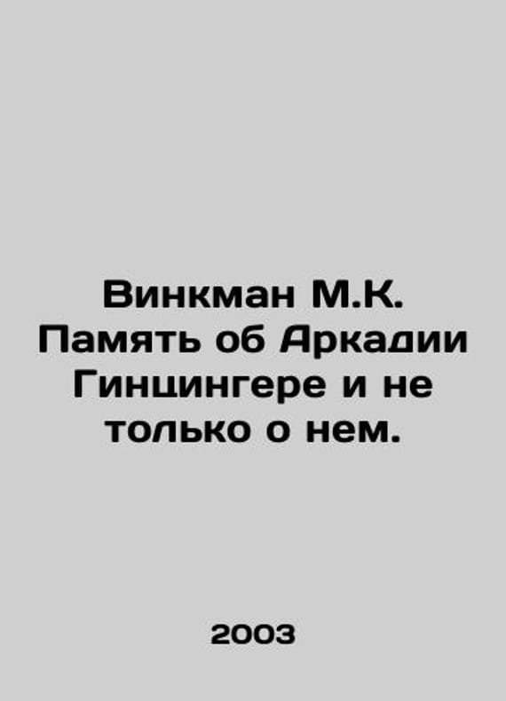 Winkman M.K. Memory of Arcadia Ginzinger and beyond. In Russian /Vinkman M.K. Pamyat ob Arkadii Gintsingere i ne tolko o nem. 189 cc printing house. We have thousands of titles and often several copies of each title may be available. Please feel free to contact us for a detailed description of the copies available. SKUalbcffeafe5ce550067.