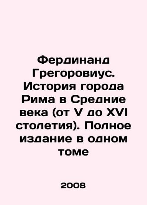 Ferdinand Gregorovius: History of the City of Rome in the Middle Ages (from the fifth to the sixteenth centuries). Complete edition in one volume In Russian /Ferdinand Gregorovius. Istoriya goroda Rima v Srednie veka (ot V do XVI stoletiya). Polnoe izdanie v odnom tome M. Alpha-book 2008. 1280s. We have thousands of titles and often several copies of each title may be available. Please feel free to contact us for a detailed description of the copies available. SKUalbd006a6fd929e040d.