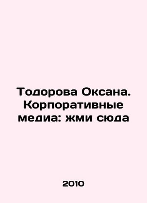 Todorova Oksana. Corporate Media: click here In Russian /Todorova Oksana. Korporativnye media: zhmi syuda Plaske 2010. 256s. We have thousands of titles and often several copies of each title may be available. Please feel free to contact us for a detailed description of the copies available. SKUalbd045e0b79922ffe5.