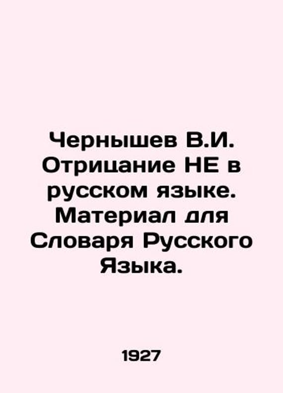 Chernyshev V.I. Denial is NOT in Russian. Material for the Dictionary of Russian Language. In Russian /Chernyshev V.I. Otritsanie NE v russkom yazyke. Material dlya Slovarya Russkogo Yazyka. Appendix to the I Issue of the VIII Volume of the Dictionary of the Russian Language, published by the II Department of the Academy of Sciences of the USSR. Leningrad. Publishing House of the Academy of Sciences of the USSR. 1927. We have thousands of titles and often several copies of each title may be available. Please feel free to contact us for a detailed description of the copies available. SKUalbd05906c45bf08779.