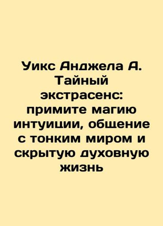 Wicks Angela A. The Secret Psychic: Adopt the magic of intuition, communication with the subtle world, and a hidden spiritual life In Russian /Uiks Andzhela A. Taynyy ekstrasens: primite magiyu intuitsii, obshchenie s tonkim mirom i skrytuyu dukhovnuyu zhizn S.-Pb.: 2022. 432p.. We have thousands of titles and often several copies of each title may be available. Please feel free to contact us for a detailed description of the copies available. SKUalbd0aa581f3c50bf2d.