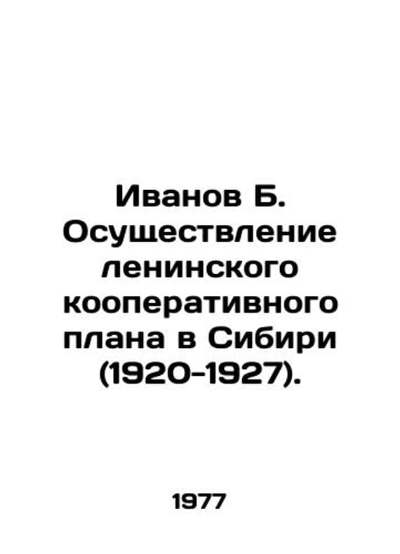 Ivanov B. Implementing Lenins Cooperative Plan in Siberia (1920-1927). In Russian /Ivanov B. Osushchestvlenie leninskogo kooperativnogo plana v Sibiri (1920-1927). Under the editorship of Prof. Bozhenko L. Tomsk TSU 1977. We have thousands of titles and often several copies of each title may be available. Please feel free to contact us for a detailed description of the copies available. SKUalbd0b113487ee31e44.