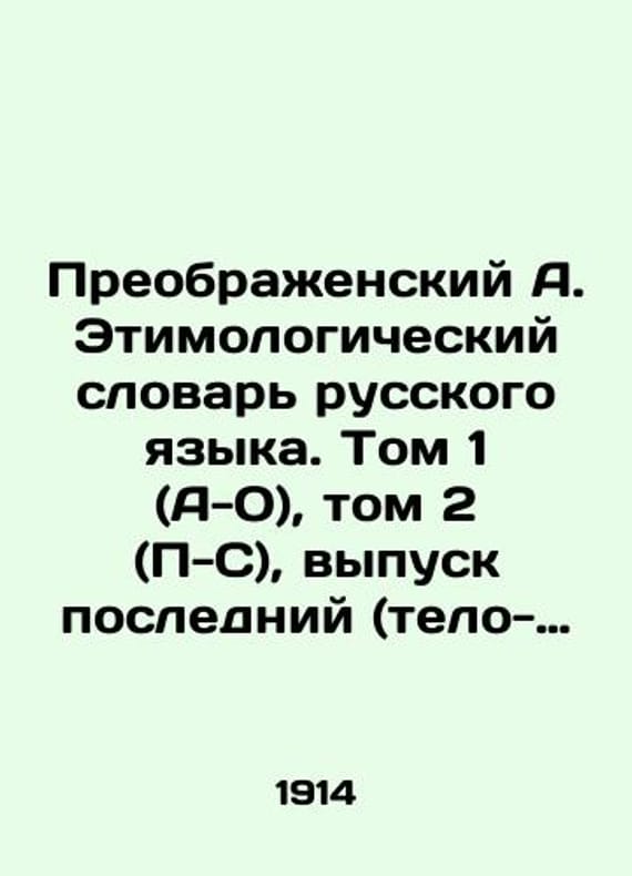 Preobrazhensky A. Etymological Dictionary of the Russian Language. Volume 1 (A-O) Volume 2 (P-C) issue of the latest (foot and mouth disease). In Russian (ask us if in doubt)/Preobrazhenskiy A. Etimologicheskiy slovar russkogo yazyka. Tom 1 (A-O) tom 2 (P-S) vypusk posledniy (telo-yashchur). Moscow Typography by G. Lissner and D. Sovko and Academy of Sciences of the USSR. 1910-1914-1949. 679 pp. We have thousands of titles and often several copies of each title may be available. Please feel free to contact us for a detailed description of the copies available. SKUalbd0b40de1953566e5