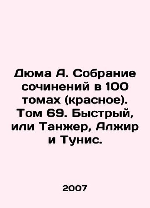 Dumas A. A collection of works in 100 volumes (red). Volume 69. Quick, or Tangiers, Algeria and Tunisia. In Russian /Dyuma A. Sobranie sochineniy v 100 tomakh (krasnoe). Tom 69. Bystryy, ili Tanzher, Alzhir i Tunis. M. Art-Business-Center 2007. 512s. We have thousands of titles and often several copies of each title may be available. Please feel free to contact us for a detailed description of the copies available. SKUalbd0c1bcec615b3630.