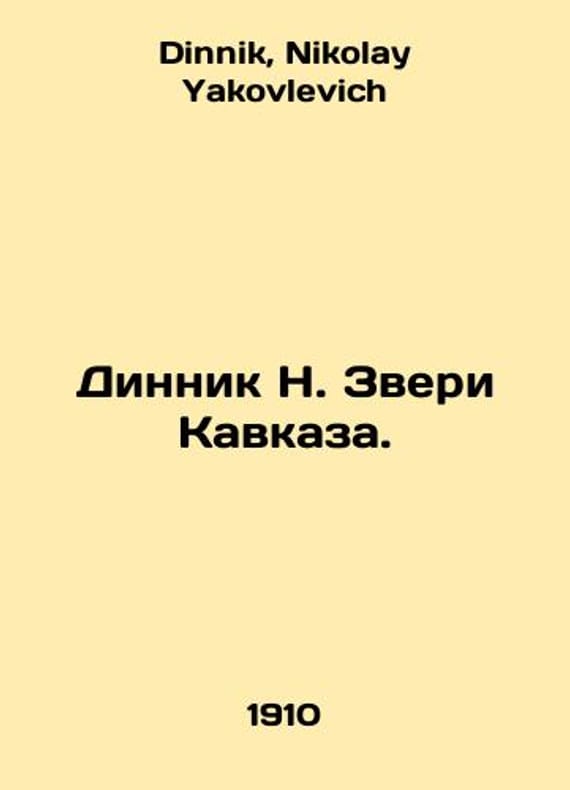 Dinnik N. Beasts of the Caucasus. In Russian /Dinnik N. Zveri Kavkaza. Cetaceans and ungulates Tiflis 1910 246s. We have thousands of titles and often several copies of each title may be available. Please feel free to contact us for a detailed description of the copies available. SKUalbd0c699431bb94785.