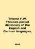 Thieme F.W. Thiemes pocket dictionary of the English and German languages. In English (ask us if in doubt)/Thieme F.W. Thiemes pocket dictionary of the English and German languages. Short description: In English (ask us if in doubt).Seventh edition. We have thousands of titles and often several copies of each title may be available. Please feel free to contact us for a detailed description of the copies available. SKUalbd13f152d37445608