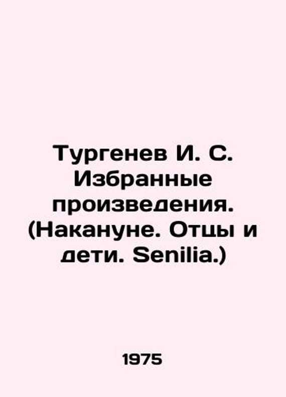 Turgenev I. S. Selected works. (The day before. Fathers and children. Senilia.) In Russian /Turgenev I. S. Izbrannye proizvedeniya. (Nakanune. Ottsy i deti. Senilia.) School Library. Drawings and Portrait of the Artist M. S. Turovsky. Kyiv. Dnipro. 1975. 400 p. We have thousands of titles and often several copies of each title may be available. Please feel free to contact us for a detailed description of the copies available. SKUalbd14999fb8cd29d74.