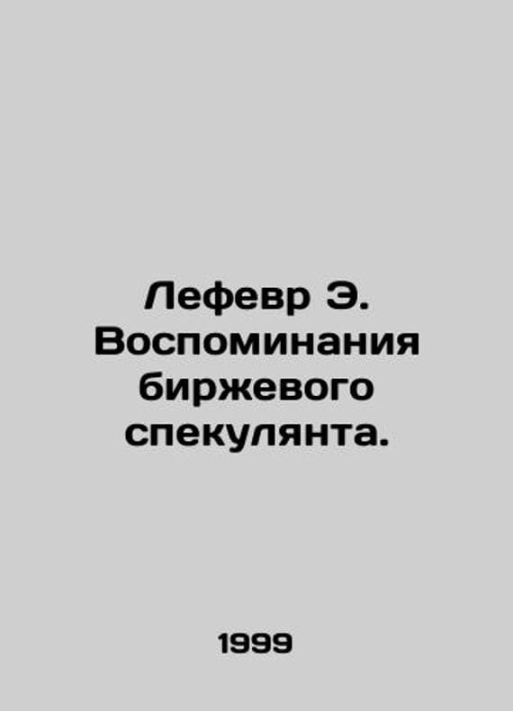Lefebvre E. Memoirs of a Stock Speculator. In Russian /Lefevr E. Vospominaniya birzhevogo spekulyanta. Series: People and Money. M. Olympus-Business. 1999.We have thousands of titles and often several copies of each title may be available. Please feel free to contact us for a detailed description of the copies available. SKUalbd14b32d71ea914e3.