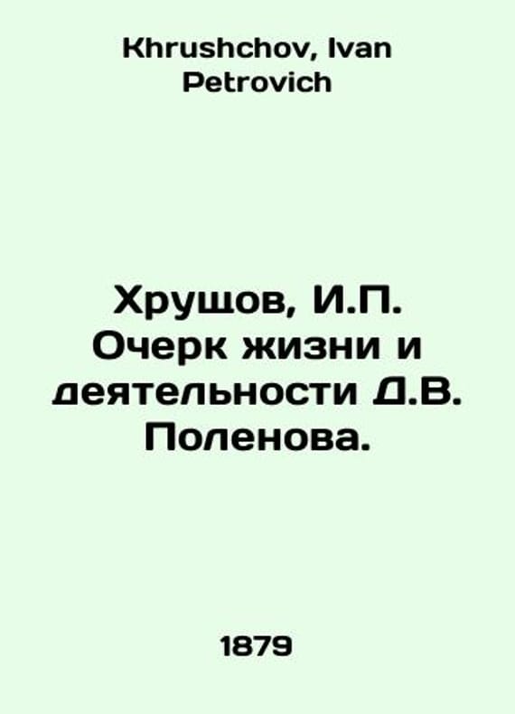 Khrushchev, I.P. Essay on the Life and Activities of D.V. Polenov. In Russian /Khrushchov, I.P. Ocherk zhizni i deyatelnosti D.V. Polenova. St. Petersburg: type. Akad. sciences, 1879. 2, 66 p. We have thousands of titles and often several copies of each title may be available. Please feel free to contact us for a detailed description of the copies available. SKUalbd1544baab235b07f.