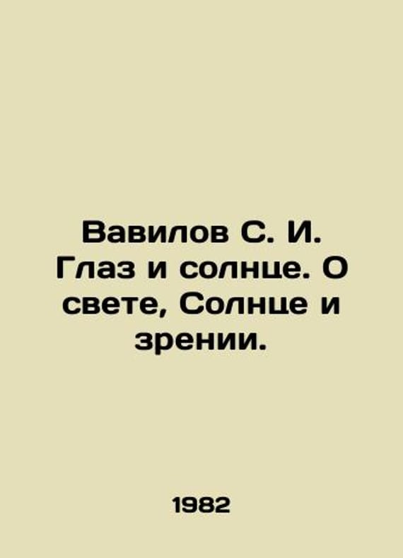 Vavilov S. I. Eye and Sun. About Light, Sun and Vision. In Russian /Vavilov S. I. Glaz i solntse. O svete, Solntse i zrenii. Series: Science. Vision. Life. M. Science, 1982. We have thousands of titles and often several copies of each title may be available. Please feel free to contact us for a detailed description of the copies available. SKUalbd156a304bfe06f8b.