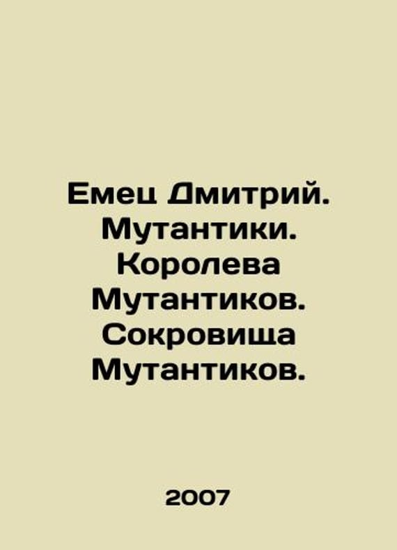 Emets Dmitry. Mutants. Queen of Mutants. Treasures of Mutants. In Russian /Emets Dmitriy. Mutantiki. Koroleva Mutantikov. Sokrovishcha Mutantikov. Series: The Magic Worlds of Dmitry Yemts. Moscow Exmo 2007.We have thousands of titles and often several copies of each title may be available. Please feel free to contact us for a detailed description of the copies available. SKUalbd16c311f91c2f5b0.