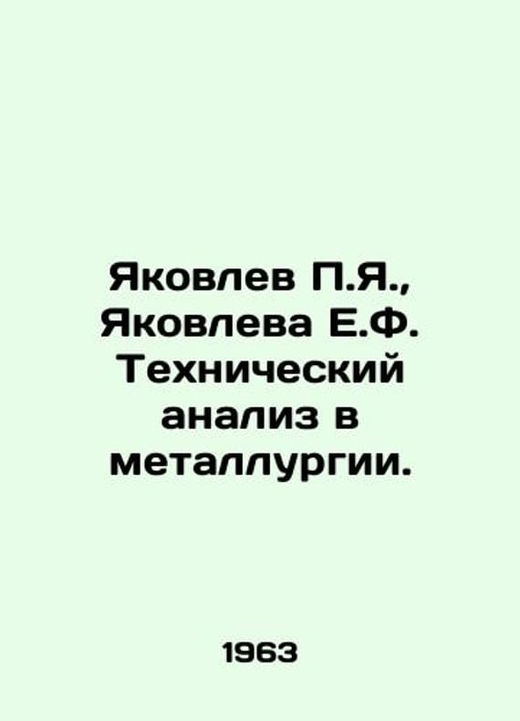 Yakovlev P.Ya., Yakovlev E.F. Technical analysis in metallurgy. In Russian /Yakovlev P.Ya., Yakovleva E.F. Tekhnicheskiy analiz v metallurgii. Reference Guide for Laboratory Technicians. Moscow Metallurgizdat 1963. 288 p. We have thousands of titles and often several copies of each title may be available. Please feel free to contact us for a detailed description of the copies available. SKUalbd179729e1dcba7f5.