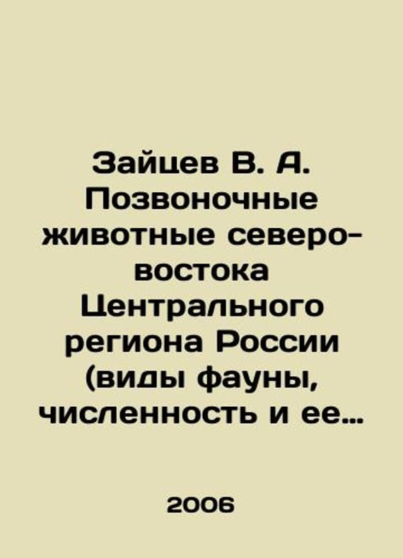 Zaitsev V. A. Vertebrates of the Northeast Central Region of Russia (species of fauna, population and changes in it). In Russian /Zaytsev V. A. Pozvonochnye zhivotnye severo-vostoka Tsentralnogo regiona Rossii (vidy fauny, chislennost i ee izmeneniya). M. Partnership of Scientific Publications of KMK 2006, 513 p. We have thousands of titles and often several copies of each title may be available. Please feel free to contact us for a detailed description of the copies available. SKUalbd1adfcc323da3b96.