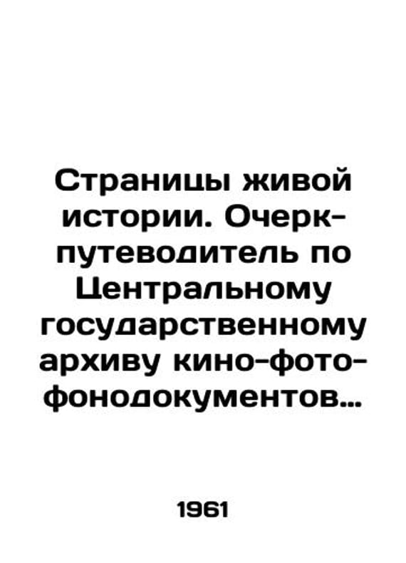 Pages of Living History. Essay-Guide to the Central State Archive of Film, Photo and Phonographic Documents of the USSR. In Russian /Stranitsy zhivoy istorii. Ocherk-putevoditel po Tsentralnomu gosudarstvennomu arkhivu kino-foto-fonodokumentov SSSR. Circulation 5000. M Edition of the Krasnogorsk Archives. 1961. 152 p. We have thousands of titles and often several copies of each title may be available. Please feel free to contact us for a detailed description of the copies available. SKUalbd1d108818a4dd0a5.