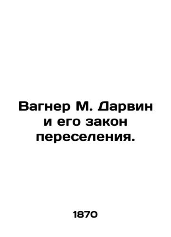 Wagner M. Darwin and his law of resettlement. In Russian (ask us if in doubt)/Vagner M. Darvin i ego zakon pereseleniya.. Translated from German SPB Landsberg Type 1870 IV 64 p. SKUalbd1eda318f532d11f.