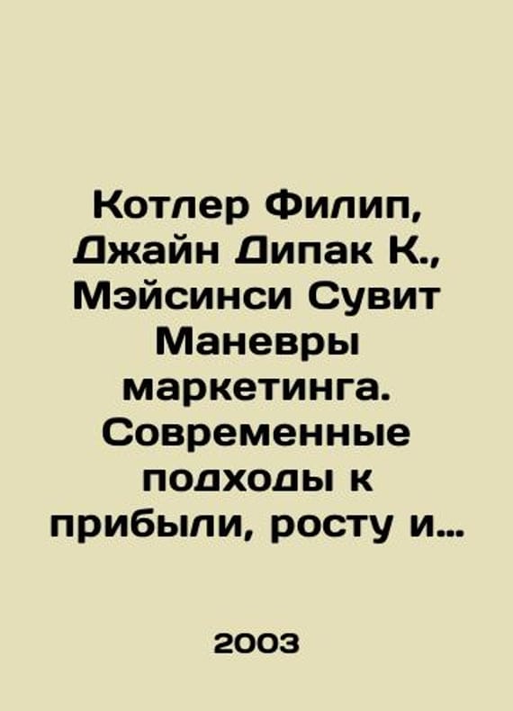 Kotler Philip, Jain Deepak K., Maisinsi Suwit Marketing Maneuvers. Modern Approaches to Profit, Growth, and Renewal In Russian /Kotler Filip, Dzhayn Dipak K., Meysinsi Suvit Manevry marketinga. Sovremennye podkhody k pribyli, rostu i obnovleniyu M. Olympus-Business 2003.We have thousands of titles and often several copies of each title may be available. Please feel free to contact us for a detailed description of the copies available. SKUalbd1f4d9fa9ef4315a.