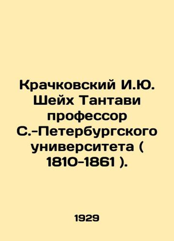 Kratchkovsky I. Yu. Sheikh Tantawi Professor of St. Petersburg University (1810-1861). In Russian /Krachkovskiy I.Yu. Sheykh Tantavi professor S.-Peterburgskogo universiteta ( 1810-1861 ). L. Publishing House of the Academy of Sciences of the USSR. 1929. 2,134 p. We have thousands of titles and often several copies of each title may be available. Please feel free to contact us for a detailed description of the copies available. SKUalbd1fa624eca5a51f3.