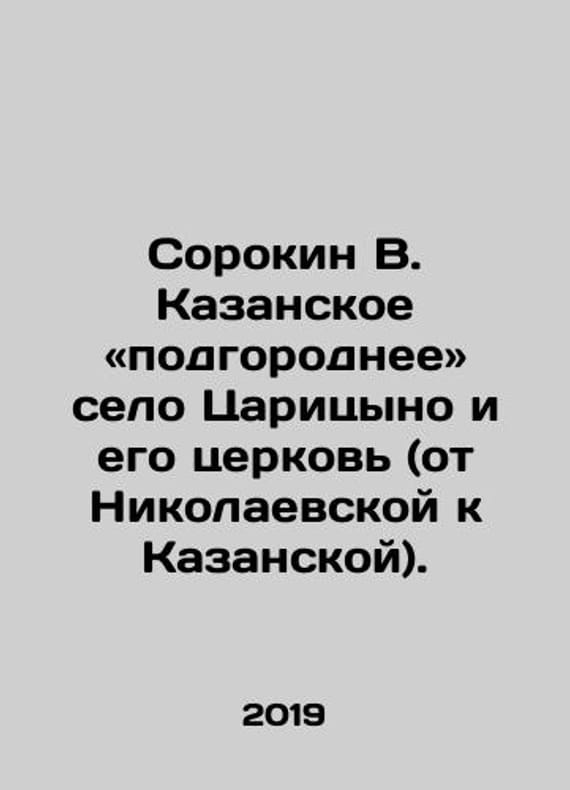 Sorokin V. Kazanskoye, the village of Tsaritsyno and his church (from Nikolaevskaya to Kazanskaya). In Russian /Sorokin V. Kazanskoe «podgorodnee» selo Tsaritsyno i ego tserkov (ot Nikolaevskoy k Kazanskoy). Kazan. 2019. 200 p. We have thousands of titles and often several copies of each title may be available. Please feel free to contact us for a detailed description of the copies available. SKUalbd1fa828630a7f99a.
