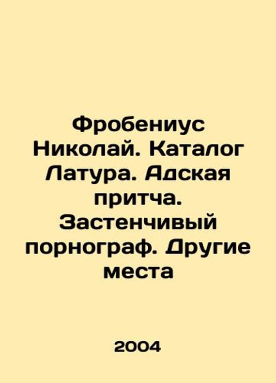 Frobenius Nikolai. Latour catalogue. A hellish parable. A shy pornographer. Other places In Russian /Frobenius Nikolay. Katalog Latura. Adskaya pritcha. Zastenchivyy pornograf. Drugie mesta Series: White Series. S.Pb.ABC-Classics, 2004. 704 p. We have thousands of titles and often several copies of each title may be available. Please feel free to contact us for a detailed description of the copies available. SKUalbd1fdd0bd266f830c.