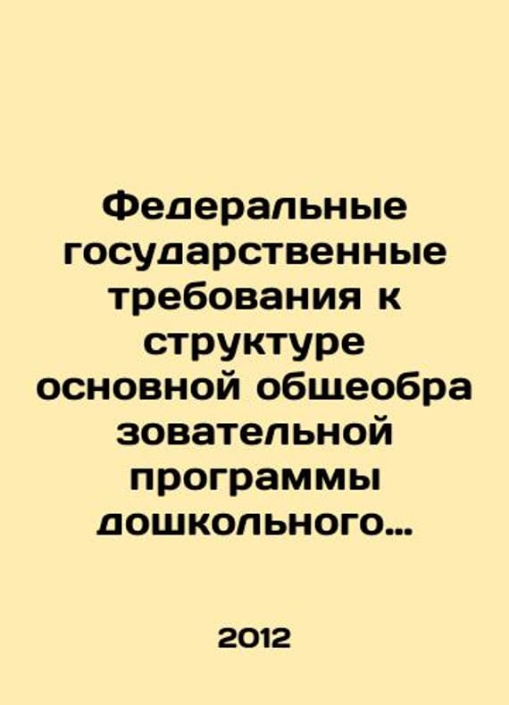 Federal State Requirements for the Structure of the Basic General Education Curriculum for Preschool Education. In Russian /Federalnye gosudarstvennye trebovaniya k strukture osnovnoy obshcheobrazovatelnoy programmy doshkolnogo obrazovaniya. Working according to new standards. Ministry of Science and Education of the Russian Federation. Moscow. Enlightenment. 2012. 14 p. We have thousands of titles and often several copies of each title may be available. Please feel free to contact us for a detailed description of the copies available. SKUalbd226db5b4db27232.