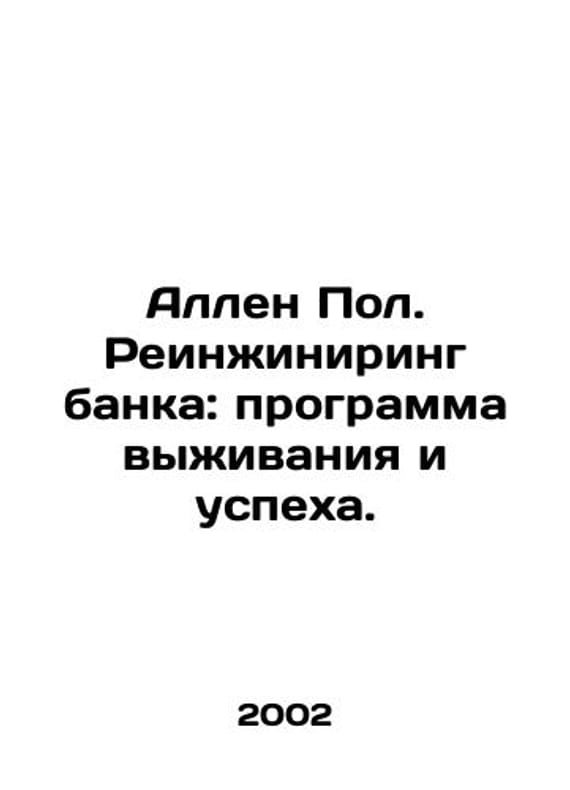 Allen Paul. Reengineering the Bank: A Survival and Success Program. In Russian /Allen Pol. Reinzhiniring banka: programma vyzhivaniya i uspekha.Translated from English. Edition revised and supplemented by M. Alpina Publisher. 2002.We have thousands of titles and often several copies of each title may be available. Please feel free to contact us for a detailed description of the copies available. SKUalbd2394081c1887e87.