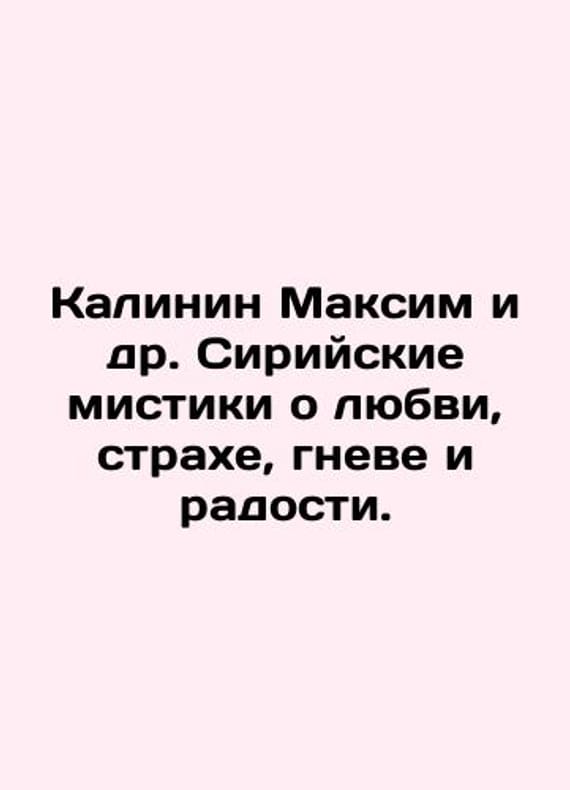 Kalinin Maksim et al. Syrian mystics about love, fear, anger, and joy. In Russian /Kalinin Maksim i dr. Siriyskie mistiki o lyubvi, strakhe, gneve i radosti. M Alpina Publisher. 2024 232 pp. We have thousands of titles and often several copies of each title may be available. Please feel free to contact us for a detailed description of the copies available. SKUalbd2600a003adc2e4d.