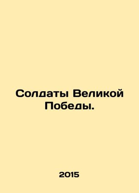 Soldiers of the Great Victory. In Russian /Soldaty Velikoy Pobedy. Vyshny Volochek: Tver Irida-inquiry 2015. 36 p. We have thousands of titles and often several copies of each title may be available. Please feel free to contact us for a detailed description of the copies available. SKUalbd29d68d164906063.
