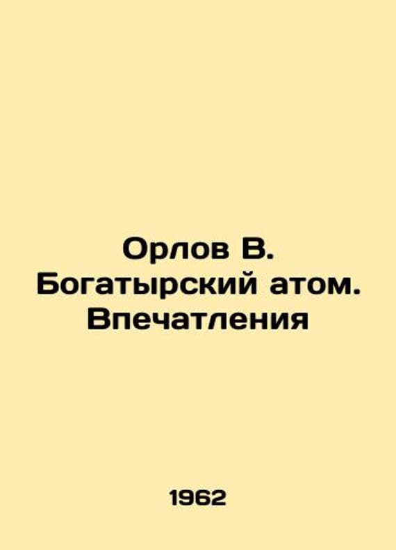Orlov V. Bogatyrsky Atom. Impressions In Russian /Orlov V. Bogatyrskiy atom. Vpechatleniya Soviet Russia 1962. 175 p. We have thousands of titles and often several copies of each title may be available. Please feel free to contact us for a detailed description of the copies available. SKUalbd2a12bb331b2e296.