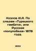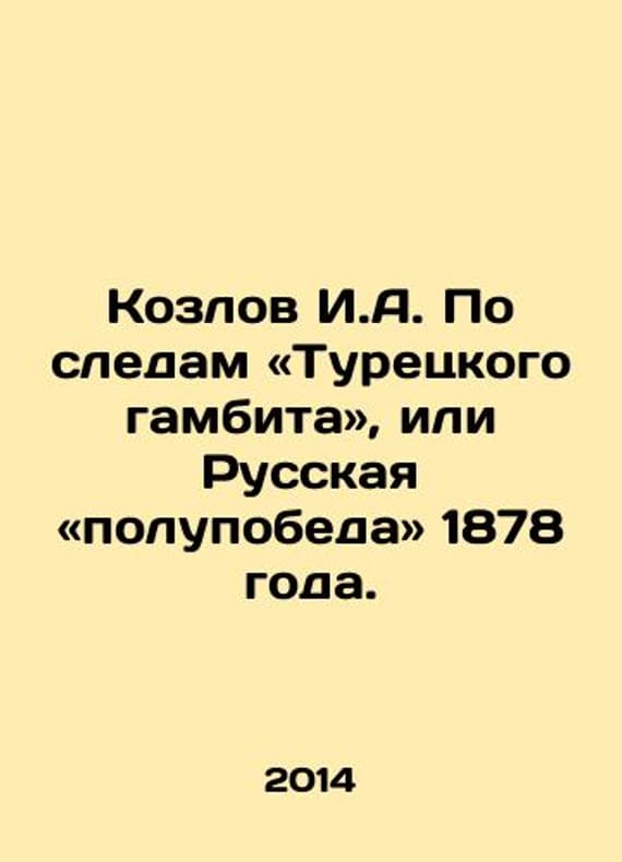 Kozlov I.A. Following in the footsteps of the Turkish Gambit, or Russian Half-Victory in 1878. In Russian /Kozlov I.A. Po sledam «Turetskogo gambita, ili Russkaya «polupobeda 1878 goda. M., Eterna, 2014. We have thousands of titles and often several copies of each title may be available. Please feel free to contact us for a detailed description of the copies available. SKUalbd2a272c0dc8c2566.