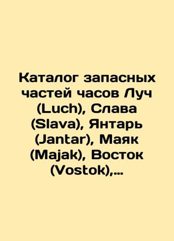 Watch spare parts catalogue Luch Slava Jantar Majak Vostok Sevani In Russian (ask us if in doubt)/Katalog zapasnykh chastey chasov Luch (Luch) Slava (Slava) Yantar (Jantar) Mayak (Majak) Vostok (Vostok) Sevani (Sevani) M Vneshtorgizdat year not specified. 192s. SKUalbd2c476fd1d113875.