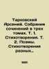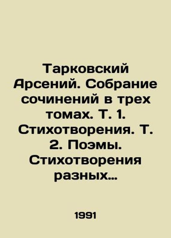 Tarkovsky Arseny. A collection of works in three volumes. Vol. 1. Poems. Vol. 2. Poems. Poems of different years. Prose. Vol. 3. Translations. In Russian /Tarkovskiy Arseniy. Sobranie sochineniy v trekh tomakh. T. 1. Stikhotvoreniya. T. 2. Poemy. Stikhotvoreniya raznykh let. Proza. T. 3. Perevody. Compilation of T. Ozerskaya-Tarkovskaya. Remarks by A. Lavrin. M. Art Literature 1991. 462 p. We have thousands of titles and often several copies of each title may be available. Please feel free to contact us for a detailed description of the copies available. SKUalbd2ff1010a4885ff8.
