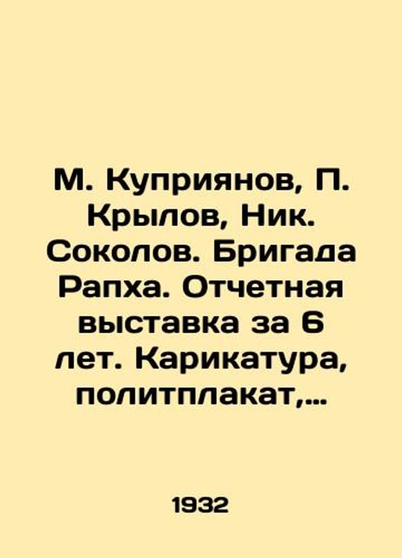 M. Kupriyanov, Krylov, Nik. Sokolov. Rapha Brigade. Accounting exhibition for 6 years. Cartoon, political poster, book, magazine, newspaper, painting, theatre. In Russian /M. Kupriyanov, Krylov, Nik. Sokolov. Brigada Rapkha. Otchetnaya vystavka za 6 let. Karikatura, politplakat, kniga, zhurnal, gazeta, zhivopis, teatr. Design of S. B. Telingater prospect. M. IZOGIZ 1932. We have thousands of titles and often several copies of each title may be available. Please feel free to contact us for a detailed description of the copies available. SKUalbd31c711fcf5ac2ce.