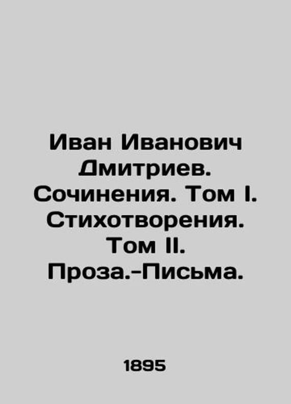 Ivan Ivanovich Dmitriev. Works. Volume I. Poems. Volume II. Prosa.-Letters. In Russian (ask us if in doubt)/Ivan Ivanovich Dmitriev. Sochineniya. Tom I. Stikhotvoreniya. Tom II. Proza.-Pisma.Editors note by A. A. Floridov. Book seller Ya. Sokolov. St. Petersburg. Vladimir Steam Typo-Lithography. 1895. XVI p. and 256 p. We have thousands of titles and often several copies of each title may be available. Please feel free to contact us for a detailed description of the copies available. SKUalbd3867208e1f46fd5