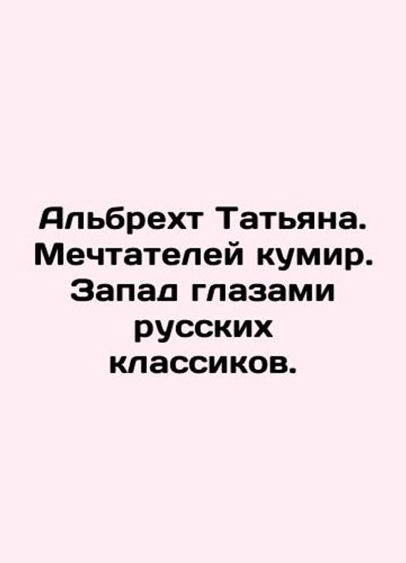 Albrecht Tatiana. Dreaming idol. The West through the eyes of Russian classics. In Russian /Albrekht Tatyana. Mechtateley kumir. Zapad glazami russkikh klassikov. Series: The Cultural Layer. Moscow: Rodina, 2022. 240 p. We have thousands of titles and often several copies of each title may be available. Please feel free to contact us for a detailed description of the copies available. SKUalbd39200f740f25c90.