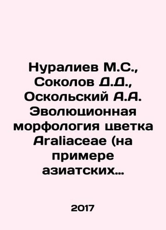 Nuraliev M.S., Sokolov D.D., Oskolsky A.A. Evolutionary morphology of the Araliaceae flower (using the example of Asian members of the Schefflera genus). In Russian /Nuraliev M.S., Sokolov D.D., Oskolskiy A.A. Evolyutsionnaya morfologiya tsvetka Araliaceae (na primere aziatskikh predstaviteley roda Schefflera). The monograph summarizes the current understanding of the structural diversity and evolution of the Araliaceae family. Special attention is paid to the issues of comparative morphology, systematics, and evolution of Scheffler, the largest aralian genus. A critical review of the work on the classification of the Apiales order and the Araliaceae family, the reconstruction of the evolutionary pathways of the Araliaceae family of flowers, and the use of data on the vasculature of flowers in evolutionary botany. We have thousands of titles and often several copies of each title may be available. Please feel free to contact us for a detailed description of the copies available. SKUalbd3a41b8315df6fbc.