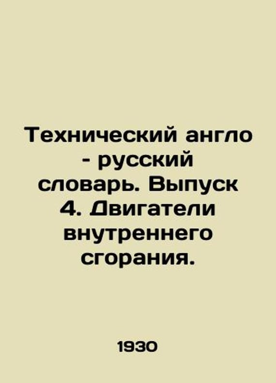 Technical English and Russian Dictionary. Issue 4. Internal Combustion Engines. In Russian /Tekhnicheskiy anglo russkiy slovar. Vypusk 4. Dvigateli vnutrennego sgoraniya. Compiled by A. Shlomanov. Edited by V.A. Makhina. Moscow. State Technical Publishing House, 1930. 171s. We have thousands of titles and often several copies of each title may be available. Please feel free to contact us for a detailed description of the copies available. SKUalbd3a5ef8bb0a9f7e2.