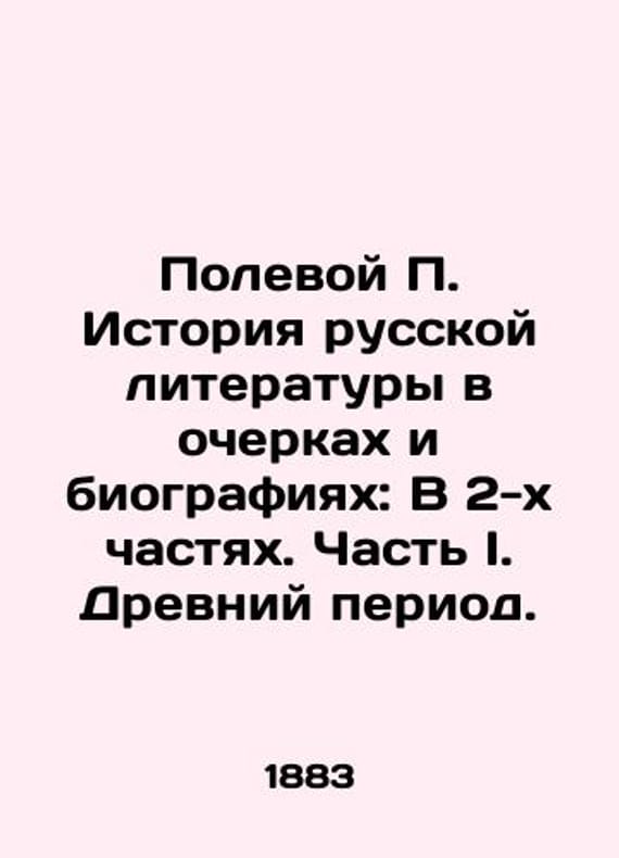 The History of Russian Literature in Essays and Biographies: In 2 Parts. Part I. The Ancient Period. In Russian /Polevoy P. Istoriya russkoy literatury v ocherkakh i biografiyakh: V 2-kh chastyakh. Chast I. Drevniy period. 5th edition. St. Petersburg. Printing House of Public Utility Partnership. 1883. We have thousands of titles and often several copies of each title may be available. Please feel free to contact us for a detailed description of the copies available. SKUalbd3afa0537a516d03.