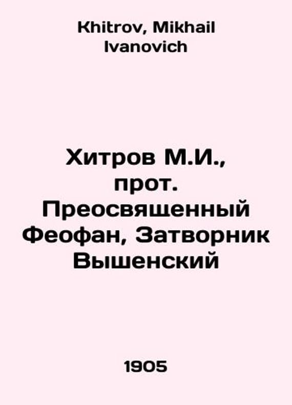 Chitrov M.I., Archpriest Theophan, The Closer of Vyshensky In Russian /Khitrov M.I., prot. Preosvyashchennyy Feofan, Zatvornik Vyshenskiy Second Edition. Edition of the Athonsky Russian Panteleimonov Monastery: Typo-lithography by I. Efimov, 1905. 228 s. We have thousands of titles and often several copies of each title may be available. Please feel free to contact us for a detailed description of the copies available. SKUalbd3d837aae8d7e2cb.