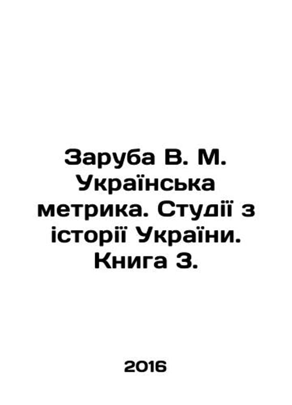 Zaruba V. M. Ukrainska metrica. Studii z istori Ukraini. Book 3. In Russian (ask us if in doubt)/Zaruba V. M. UkraYins'ka metrika. StudiYi z istoriYi UkraYini. Kniga 3.. description: In Russian (ask us if in doubt). 2016. 259 1 p. We have thousands of titles and often several copies of each title may be available. Please feel free to contact us for a detailed description of the copies available. SKUalbd47e01a8c458f31e