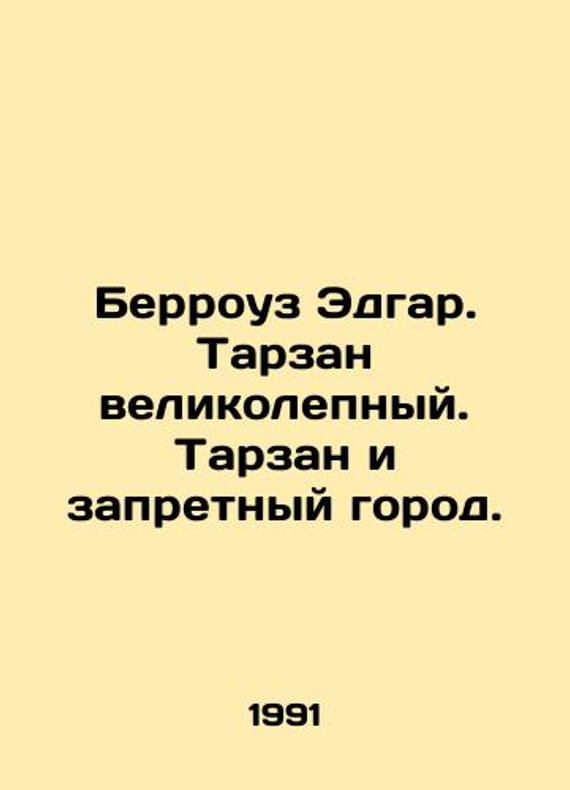 Burroughs Edgar. Tarzan is magnificent. Tarzan and the Forbidden City. In Russian /Berrouz Edgar. Tarzan velikolepnyy. Tarzan i zapretnyy gorod. Tallinn Printest 1991. 288s. We have thousands of titles and often several copies of each title may be available. Please feel free to contact us for a detailed description of the copies available. SKUalbd4ac4c76e2ecd5df.