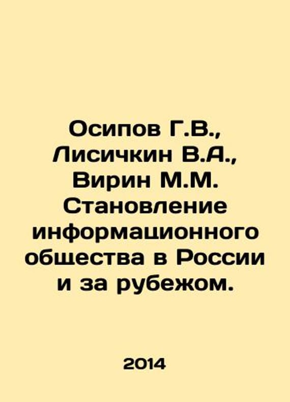 Osipov G.V., Lisichkin V.A., Virin M.M. The Development of the Information Society in Russia and Abroad. In Russian /Osipov G.V., Lisichkin V.A., Virin M.M. Stanovlenie informatsionnogo obshchestva v Rossii i za rubezhom. Textbook M Norm. Infra-M 2014. 304s. We have thousands of titles and often several copies of each title may be available. Please feel free to contact us for a detailed description of the copies available. SKUalbd50d67454ac227c2.
