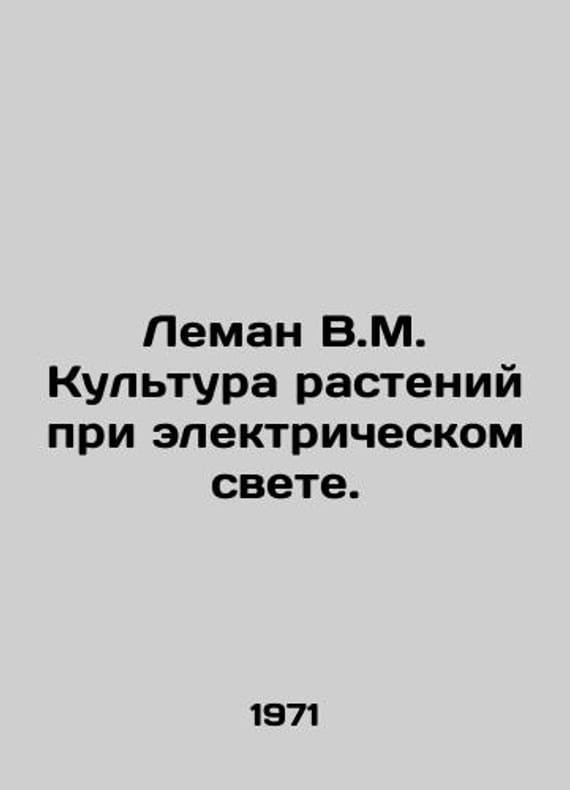 Lehman V.M. Plant culture under electric light. In Russian /Leman V.M. Kultura rasteniy pri elektricheskom svete. Light culture of plants. M. Kolos Publishing House. 1971. 320s. We have thousands of titles and often several copies of each title may be available. Please feel free to contact us for a detailed description of the copies available. SKUalbd52e66e8c14e2215.