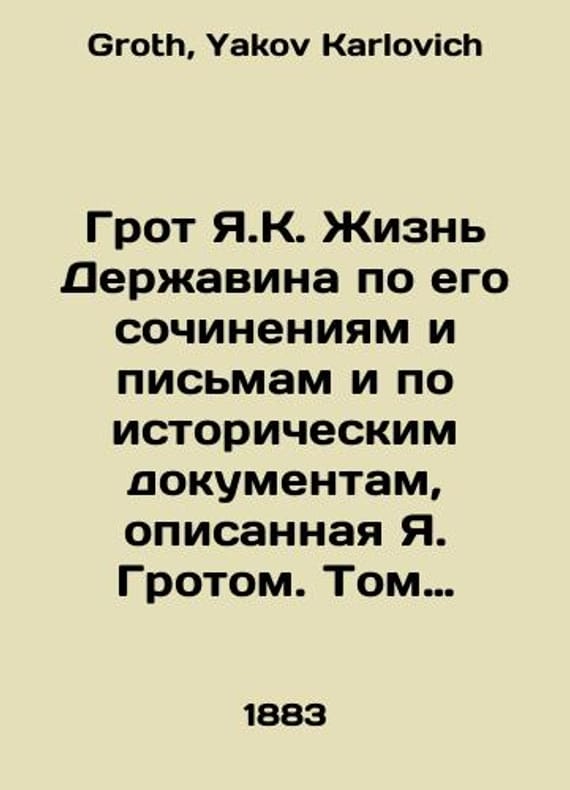 The Grotto of Y.K. The life of Derzhavin from his writings and letters and from historical documents, described by Y.K. Grotto. Volume Two. In Russian /Grot Ya.K. Zhizn Derzhavina po ego sochineniyam i pismam i po istoricheskim dokumentam, opisannaya Ya. Grotom. Tom vtoroy. With portraits, notes and an index to both volumes of biography. St. Petersburg Printing House of the Imperial Academy of Sciences. 1883. 4, X, 664 c. We have thousands of titles and often several copies of each title may be available. Please feel free to contact us for a detailed description of the copies available. SKUalbd532f6f119766480.