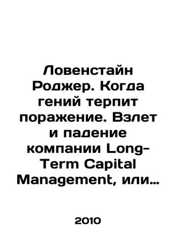 Lovenstein Roger: When Genius Fails. The Rise and Fall of Long-Term Capital Management, or How One Small Bank Created a Trillion-Dollar Hole. In Russian /Lovenstayn Rodzher. Kogda geniy terpit porazhenie. Vzlet i padenie kompanii Long-Term Capital Management, ili Kak odin nebolshoy bank sozdal dyru v trillion dollarov. Library of Sberbank M. Olympus-Business 2010 416 p.We have thousands of titles and often several copies of each title may be available. Please feel free to contact us for a detailed description of the copies available.SKUalb1c0dab6b788955de.