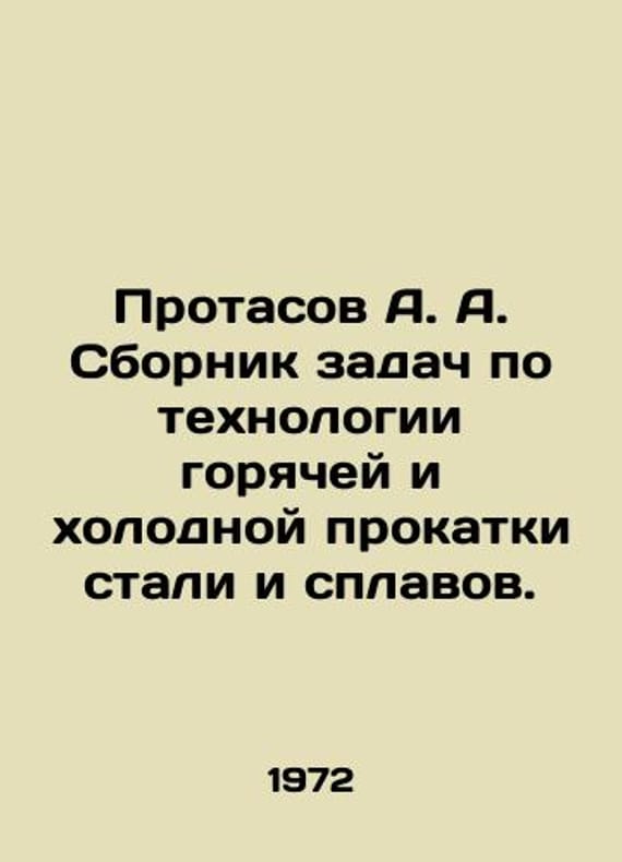 Protasov A. A. Compilation of tasks in hot and cold steel and alloy rolling technology. In Russian /Protasov A. A. Sbornik zadach po tekhnologii goryachey i kholodnoy prokatki stali i splavov. M. Izd.Metallurgiya 1972. 320 p. We have thousands of titles and often several copies of each title may be available. Please feel free to contact us for a detailed description of the copies available. SKUalbd567f01e87d78e2b.